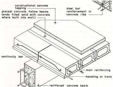 The beams can easily be made away from site and then fixed into place, saving time. Services can also be run in between the planks and they can all be checked for strength and reliability, resulting in a consistent construction.